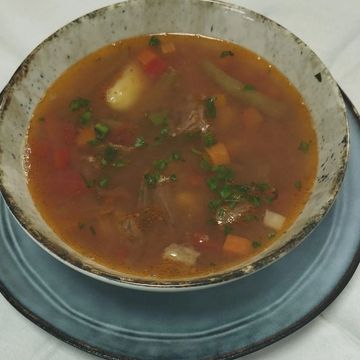 / pork leg, onion, tomato, pepper, mushrooms