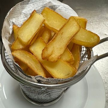 ciolan de porc (600-700 gr), cartofi, hrean, mustar, salata decor, sos demi glace / pork knuckle (600-700 gr), straw potatoes, horseradish, mustard, demi-glace sauce